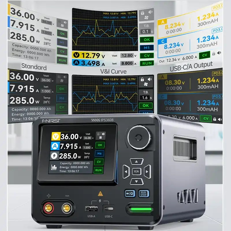 FNIRSI IPS3608 - programozható labortápegység: 36 V, 8 A, 286 W, színes grafikus kijelző, PC-kapcsolat