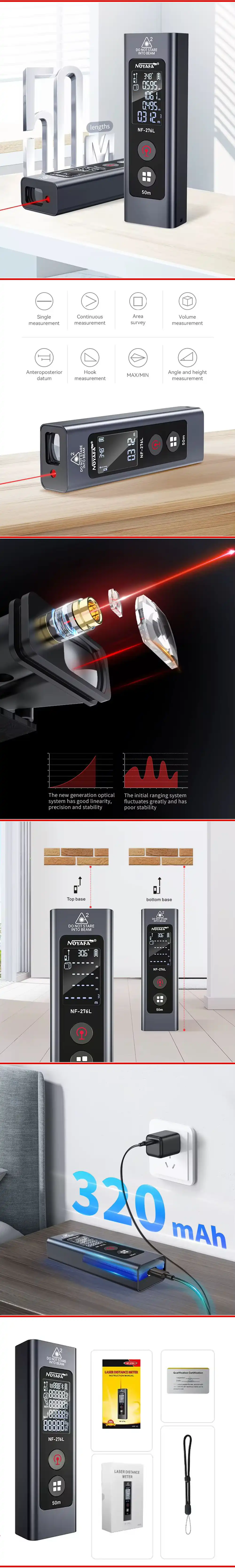 Noyafa NF-276L - mini lézeres távolságmérő: 50 m, Pitagorasz, terület-, térfogatszámítás