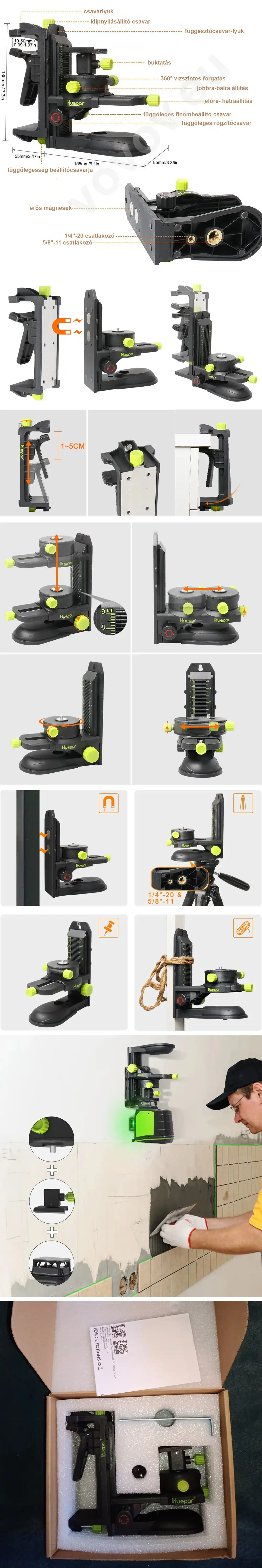 Huepar PV10+ - mágneses konzol felfogató klipsszel